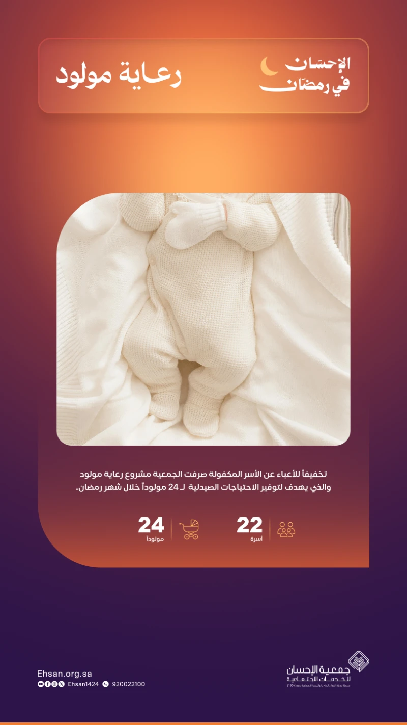 صرف مشروع رعاية مولود لـ 24 مولودًا من الأسر المكفولة خلال رمضان 1447هـ